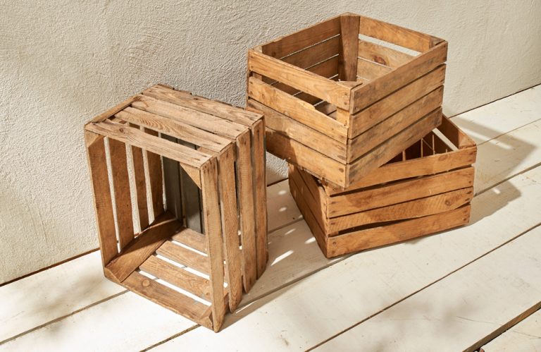 Avec un peu d’imagination, vous pouvez réutiliser ces cagettes pour en faire des meubles de rangement.